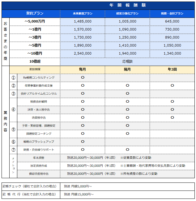 - 経営戦略を含めたサポートをご希望の会社向け(未来創造プラン)
