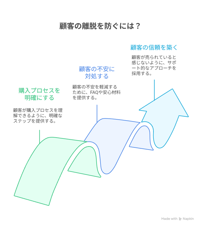 本記事では、お客様が「買う決断」をしたあとに不安を感じて離脱してしまう3つの落とし穴と、その具体的な対策を解説します。